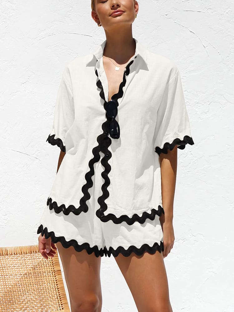 Casual Printed Cardigan Shirt Shorts Set