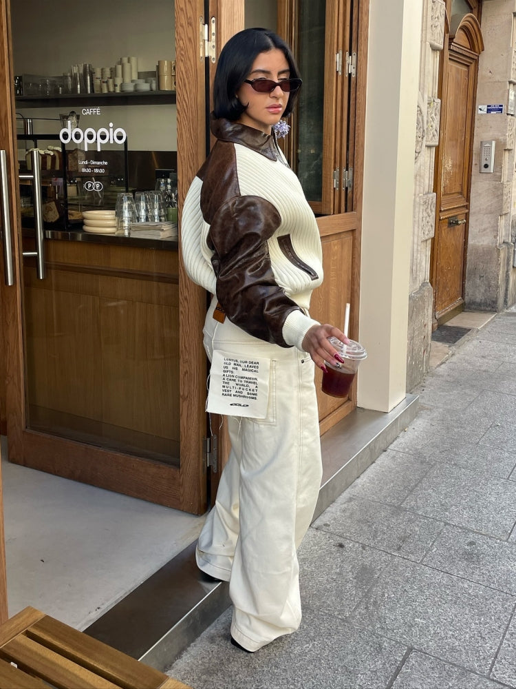 Modern color-block design with fashion-forward contrast panels