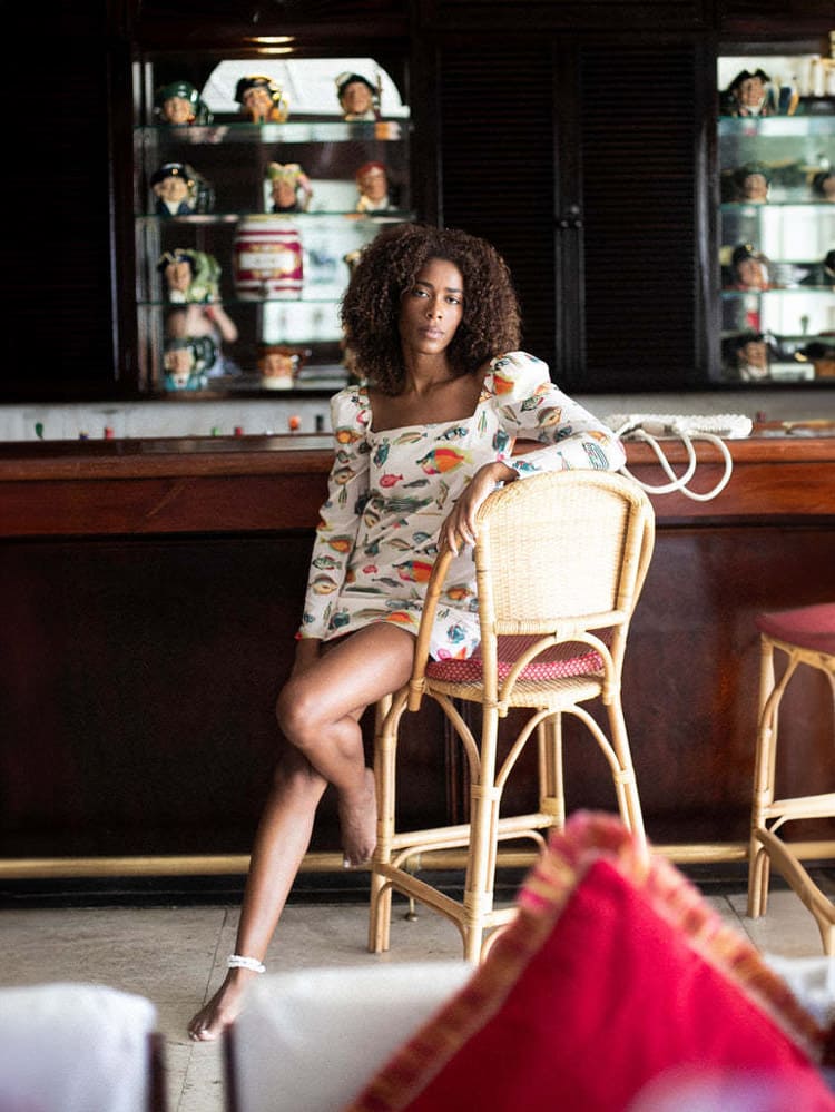 This maxi dress is giving Spring Goddess! The bold contrasting floral pattern, asymmetrical tiered skirts, deep v-neck and lace up back makes this dress perfect for wedding guests and outdoor parties. The light fabric gives this dress an airy and soft look, paired perfectly with a gold necklace, gold hair accessories, and nude heels or sandals.