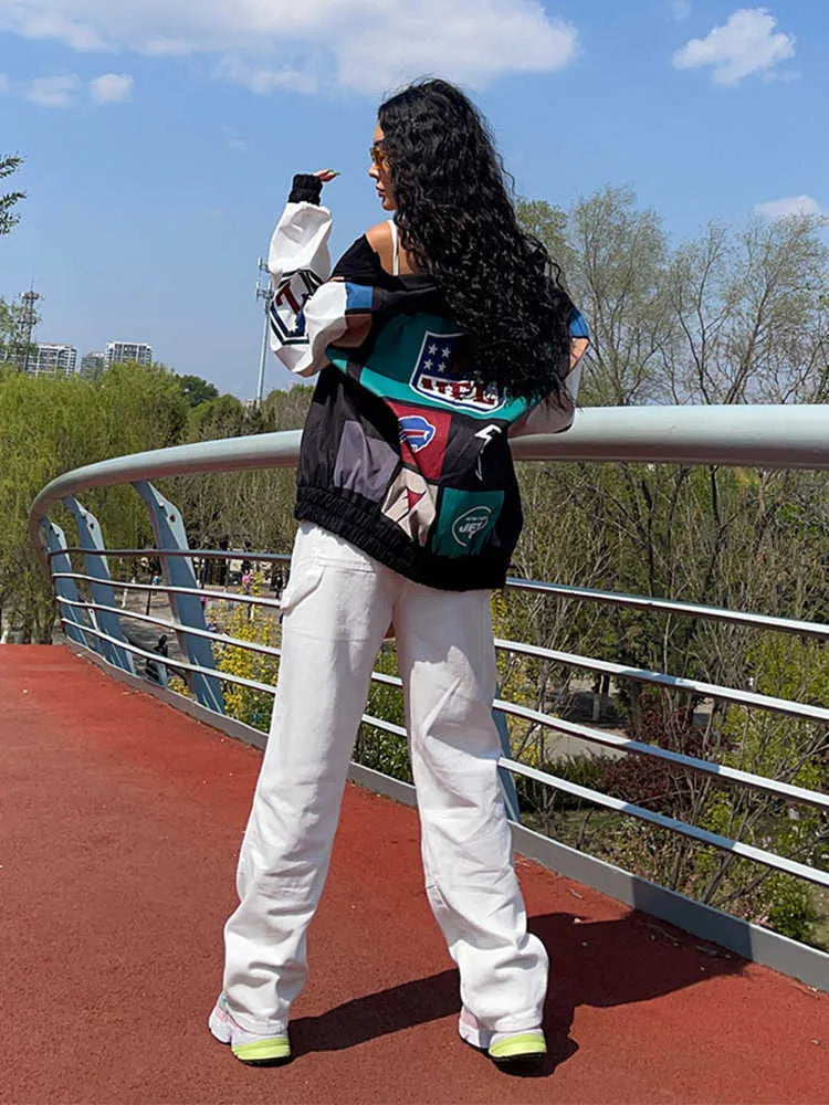 Crafted with a keen eye for detail and a focus on fashion-forward design, this jacket effortlessly combines bold color blocking with a loose, relaxed fit. The result? A versatile piece that adds a touch of drama to your look while keeping you comfortably covered.