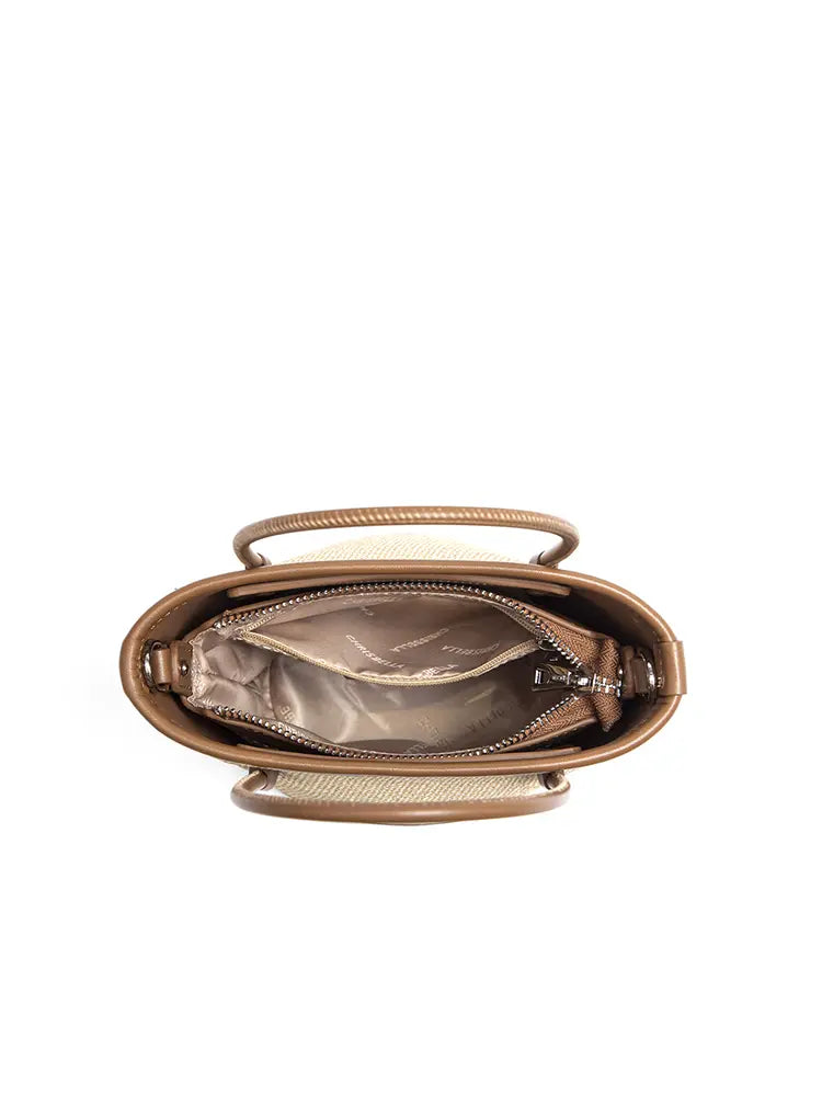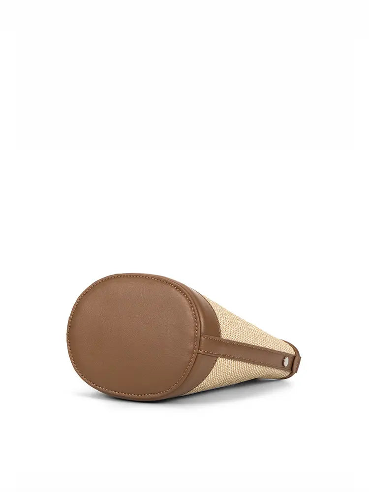 Compact bucket shape with detailed woven design
