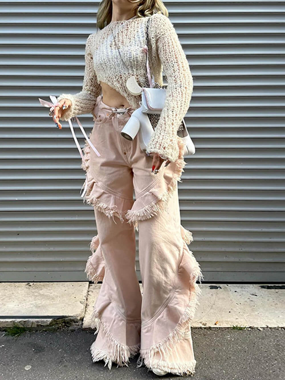 Dare to be different with our Pink Low-Waisted Raw Edge Jeans! These jeans are the ultimate expression of your unique style and rebellious spirit. Crafted for those who march to the beat of their own fashion drum, these jeans are here to make a statement.