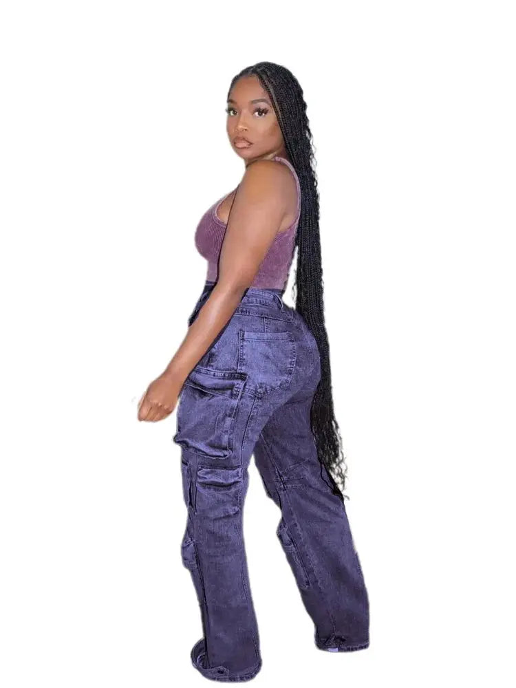 These street-style cargo jeans blend utility and fashion effortlessly. Featuring multiple pockets and a relaxed fit, these jeans are both practical and trendy, making them an essential addition to your casual wardrobe.