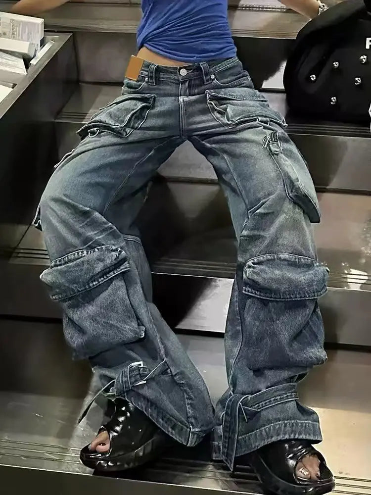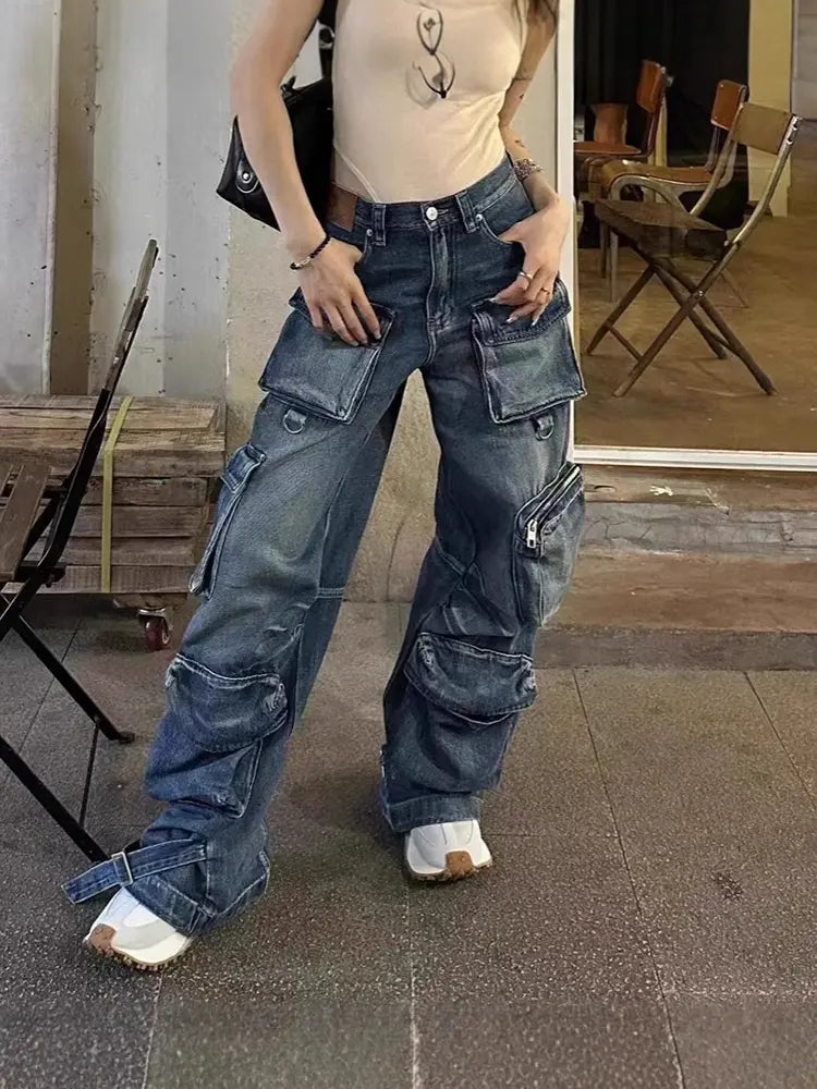 Embrace the street-style vibes with these vintage-inspired, multi-pocket denim work pants. Designed for the modern, confident woman, these pants feature a relaxed, wide-leg silhouette and a distressed, washed finish for a cool, worn-in look. The functional multi-pocket design enhances both style and practicality, while the high-quality denim ensures comfort throughout the day. Perfect for layering in autumn and winter, these pants offer a bold statement on any street corner.